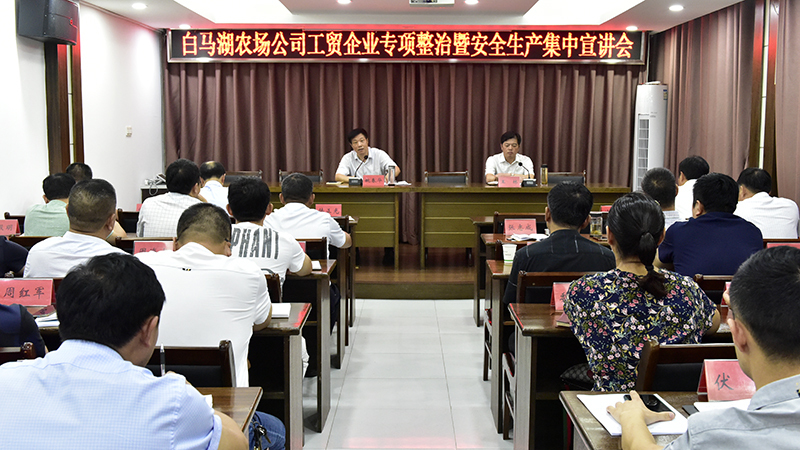 為深入學(xué)習(xí)貫徹習(xí)近平關(guān)于安全生產(chǎn)的重要思想和黨中央、國(guó)務(wù)院決策部署,認(rèn)真落實(shí)省、集團(tuán)公司和地方政府相關(guān)要求,扎實(shí)推進(jìn)安全生產(chǎn)專(zhuān)項(xiàng)整治,保證實(shí)現(xiàn)安全生產(chǎn)專(zhuān)項(xiàng)整治重點(diǎn)領(lǐng)域宣傳教育“全覆蓋”,8月27日上午,白馬湖農(nóng)場(chǎng)公司召開(kāi)工貿(mào)企業(yè)專(zhuān)項(xiàng)整治專(zhuān)題部署暨安全生產(chǎn)集中宣講會(huì),由黨委書(shū)記姚春華作安全生產(chǎn)專(zhuān)題宣講,并邀請(qǐng)淮安區(qū)應(yīng)急管理局副局長(zhǎng)陳華昌作安全生產(chǎn)專(zhuān)項(xiàng)整治專(zhuān)題部署。