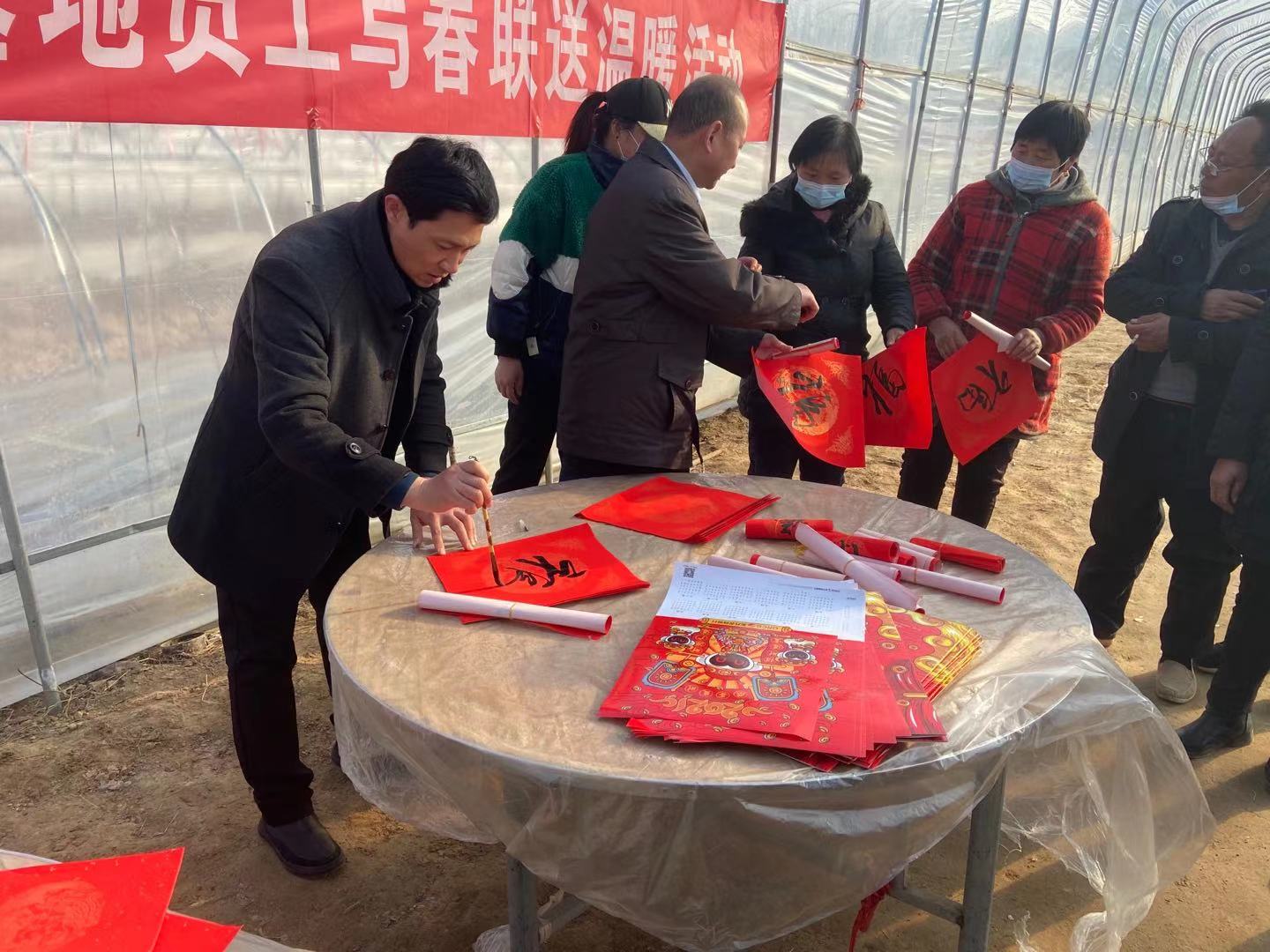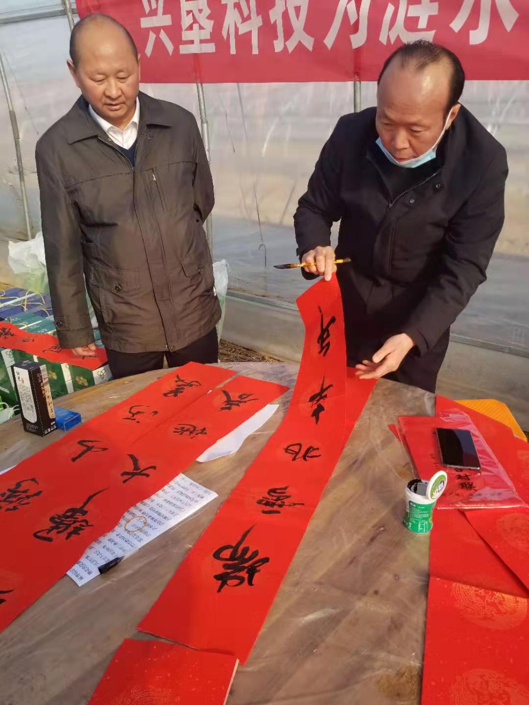 春節(jié)將至,幫扶情深。2021年2月4日下午,江蘇農(nóng)墾興墾農(nóng)業(yè)科技有限公司董事長、總經(jīng)理陳叢林、副總經(jīng)理楊育清、馬傳武一行到漣水產(chǎn)業(yè)幫扶基地開展寫春聯(lián)送溫暖慰問活動,為基地村民送上組織的關(guān)懷和新年的祝福。漣水縣林場村支部書記陳法寶一同參加慰問活動。