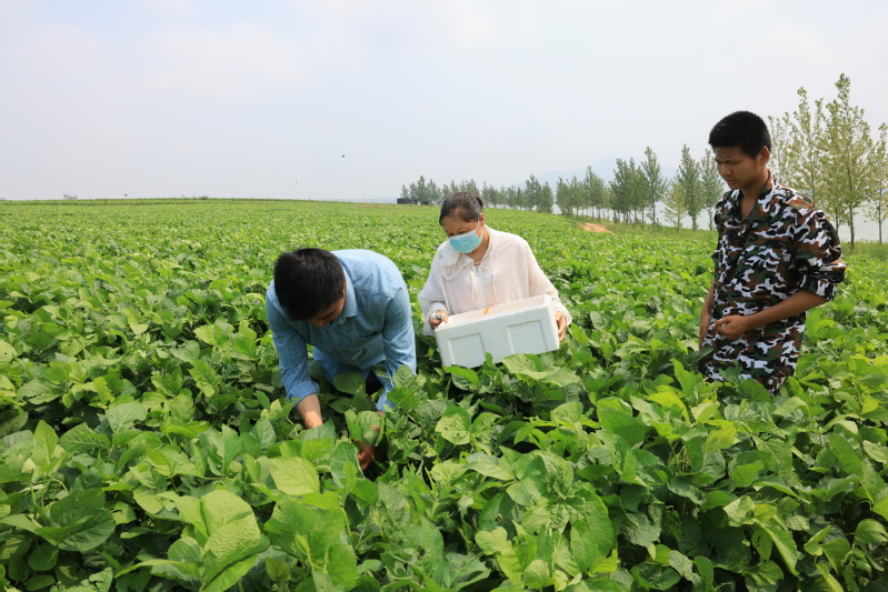 7月2日,在贛榆區(qū)塔山鎮(zhèn)店子村豆丹養(yǎng)殖基地,崗埠農(nóng)場(chǎng)公司富民科技園技術(shù)人員正在一絲不茍地教當(dāng)?shù)卮迕裢斗?/span>豆丹蟲(chóng)卵,大家不顧高溫,小心翼翼地用粘著豆丹蟲(chóng)卵的牛皮紙,包裹好嫩綠的黃豆葉,然后用訂書(shū)機(jī)訂好。