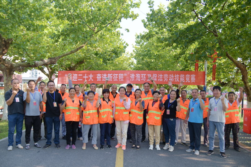下午3點整,在“‘建功十四五 奮進新征程’淮海環(huán)衛(wèi)保潔勞動技能競賽”的條幅下,環(huán)衛(wèi)工人身著鮮艷的工作服集結在比賽現場,參賽人員以飽滿的熱情和躍躍欲試的態(tài)度,準備在賽場上施展身手。
