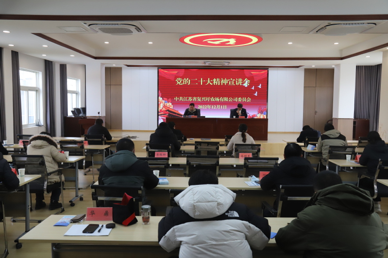為深入學習宣傳貫徹黨的二十大精神,12月1日上午,復興圩農(nóng)場有限公司組織召開黨的二十大精神宣講會,邀請了黨的二十大代表、淮安市盱眙縣桂五鎮(zhèn)養(yǎng)老黨支部書記、敬老院院長李銀江到場傳達宣講黨的二十大精神。農(nóng)場公司黨委領(lǐng)導班子成員、全體在職黨員、管理人員參加了宣講會。