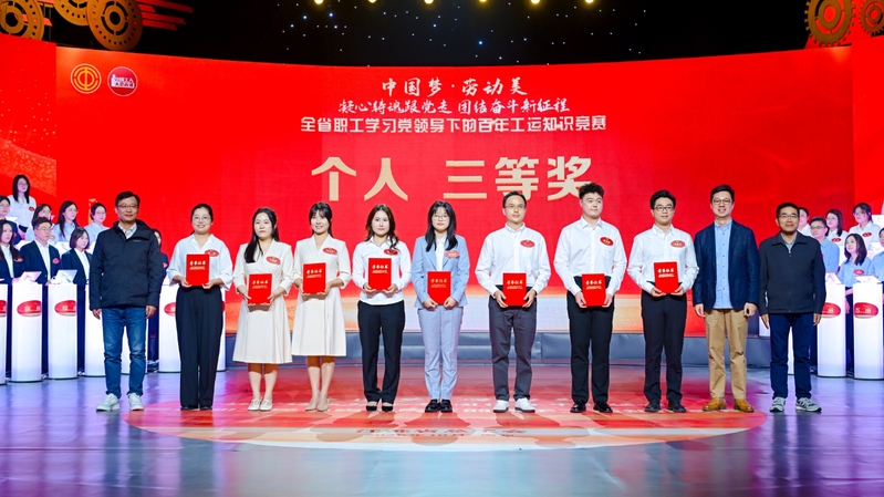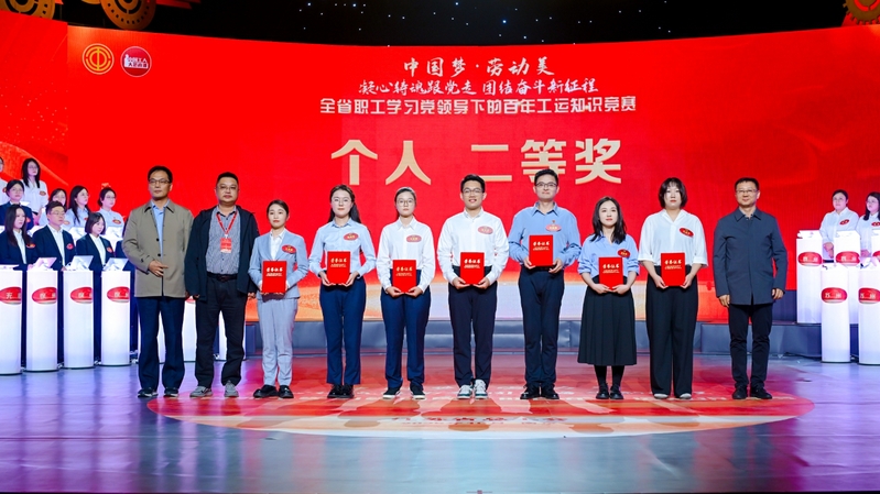 10月24日,由江蘇省總工會舉辦的“中國夢·勞動美——凝心鑄魂跟黨走,團結(jié)奮斗新征程”全省職工學(xué)習(xí)黨領(lǐng)導(dǎo)下的百年工運知識競賽活動在江蘇省廣播電視總臺1號演播大廳舉行,來自全省各地市和產(chǎn)業(yè)工會的23支代表隊、69名精英選手參與比賽。上午的初賽中,集團代表隊的欒薇、王淑玉、黃昊之3名隊員克服備賽人員分散、備賽時間短等困難,在初賽三輪比拼中越戰(zhàn)越勇,以團體第五名的成績殺入下午總決賽,決賽中隊員們團結(jié)拼搏、穩(wěn)定發(fā)揮,最終獲得1名個人二等獎、2名個人三等獎和團體銅獎的好成績。